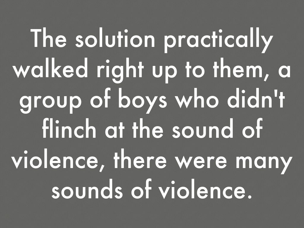 The solution practically walked right up to them, a group of boys who didn't flinch at the sound of violence, there were many sounds of violence.