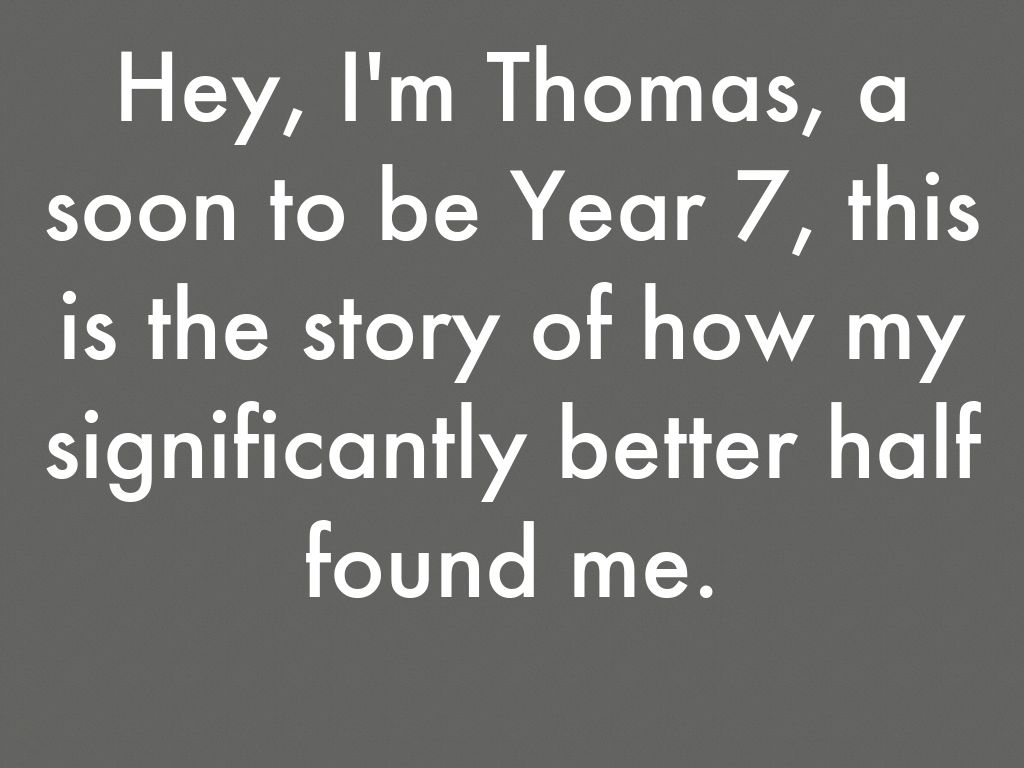 Hey, I'm Thomas, a soon to be Year 7, this is the story of how my significantly better half found me.
