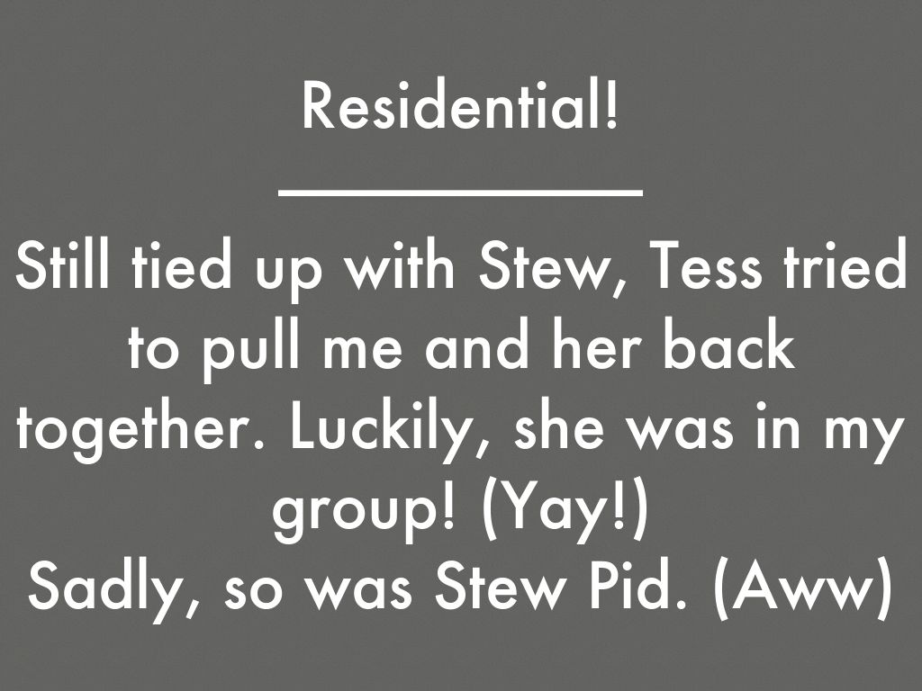 Still tied up with Stew, Tess tried to pull me and her back together. Luckily, she was in my group! (Yay!)
