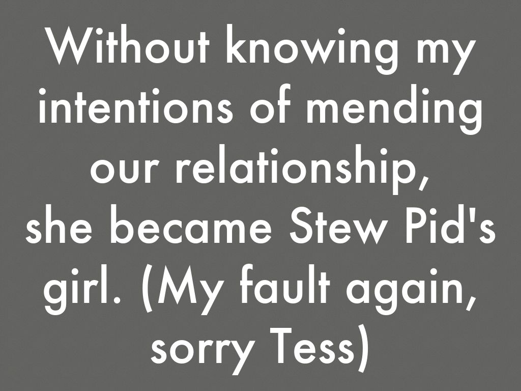 Mainly because I missed talking to her. On the 3rd day, Stew dumped her! (Yay? Or Aww?) Yay for me!