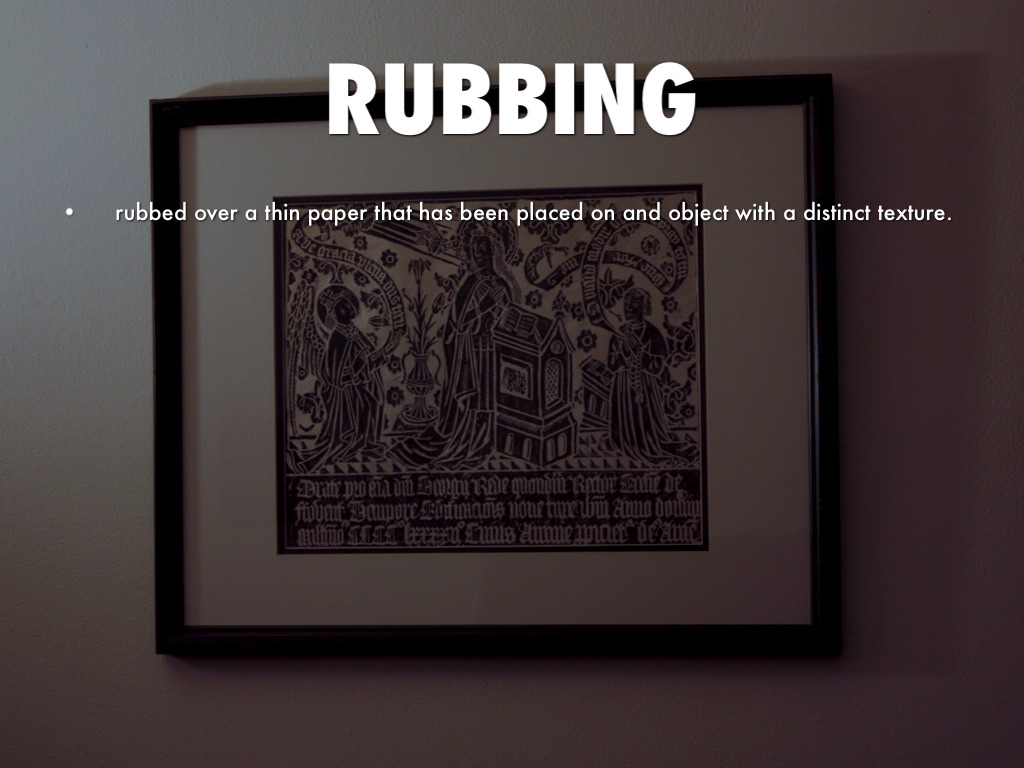 rubbed over a thin paper that has been placed on and object with a distinct texture.
