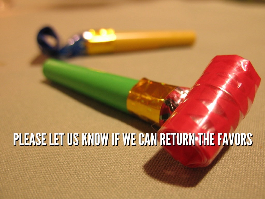 PLEASE LET US KNOW IF WE CAN RETURN THE FAVORS