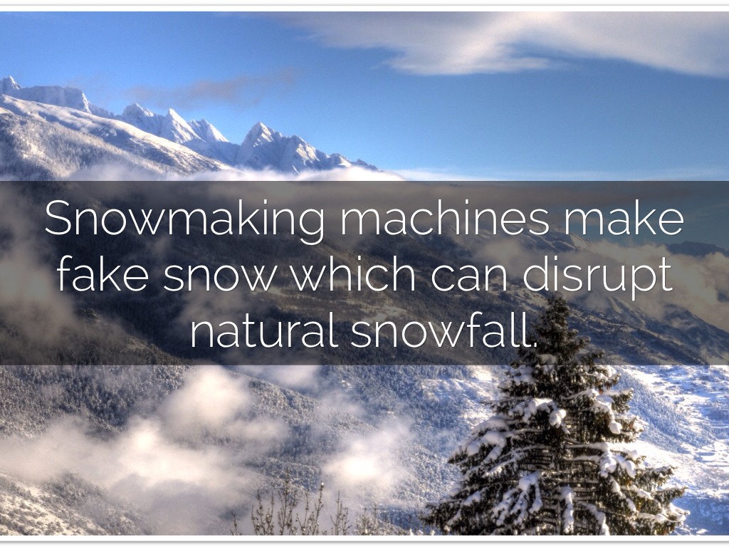 Snowmaking machines make fake snow which can disrupt natural snowfall.