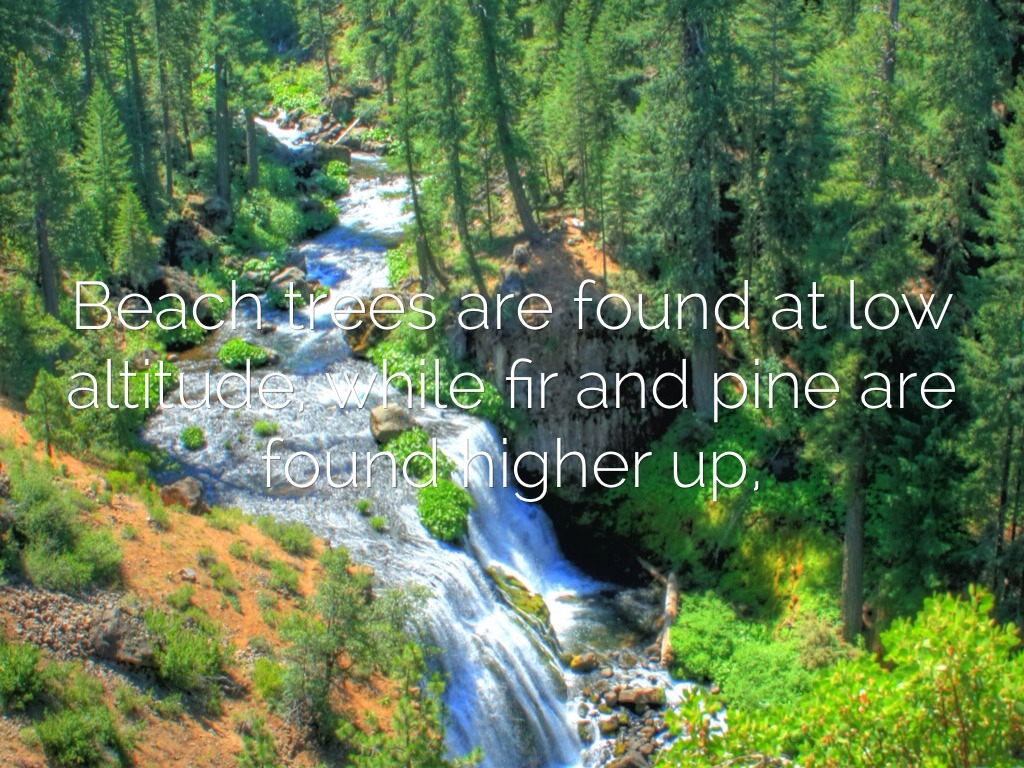 Beach trees are found at low altitude, while fir and pine are found higher up,
