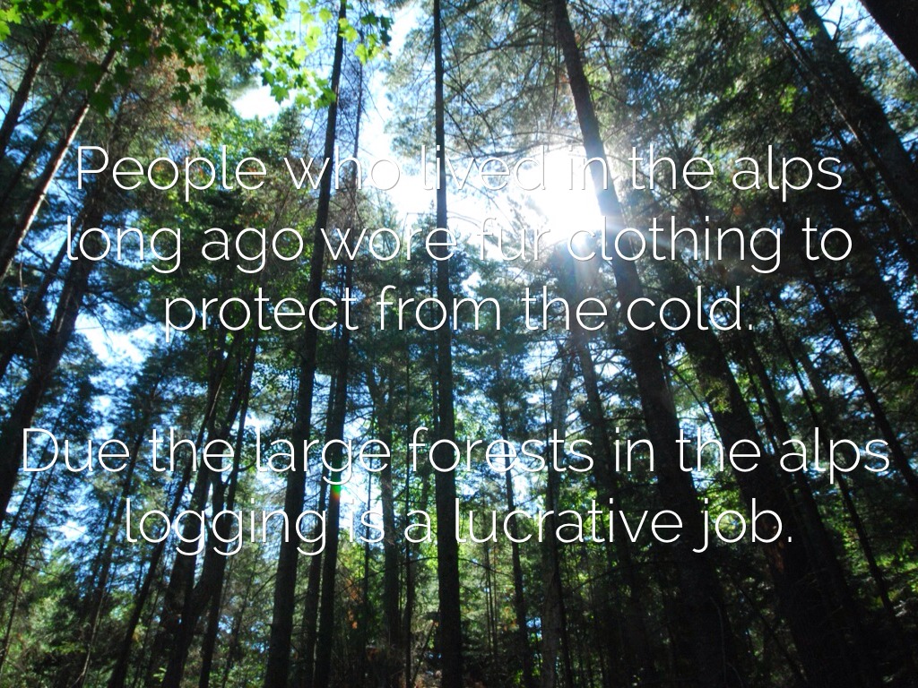People who lived in the alps long ago wore fur clothing to protect from the cold.