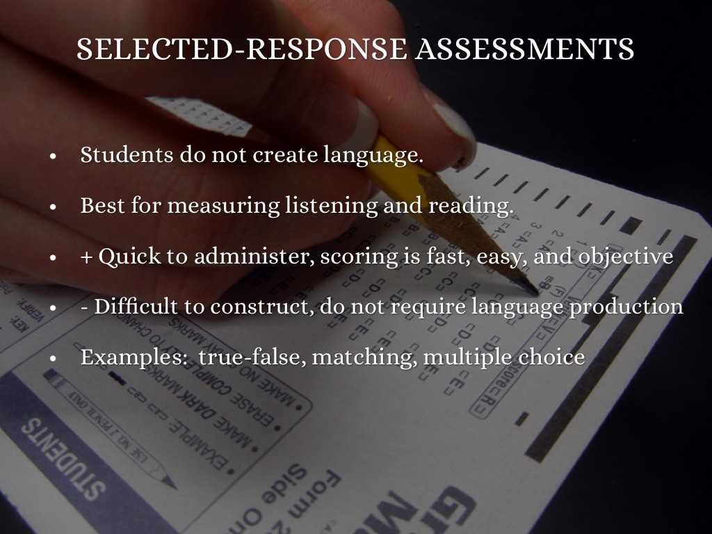 Selected-response (true-false, matching, multiple choice)