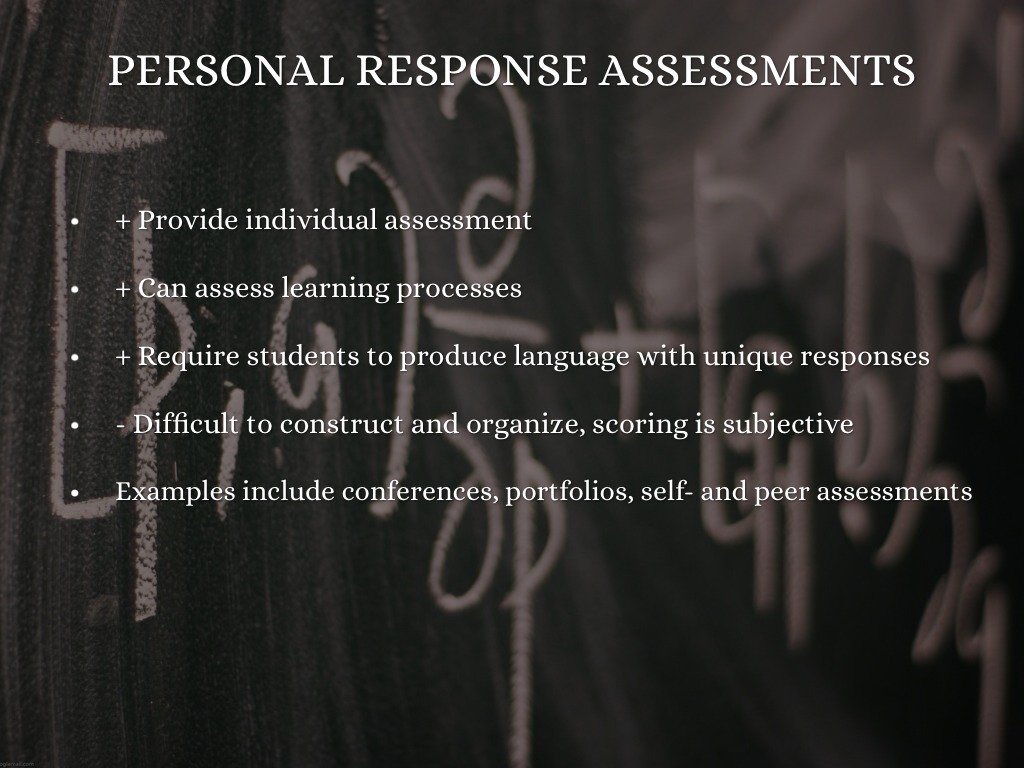 Personal-response (conference, portfolio, self- or peer assessments)