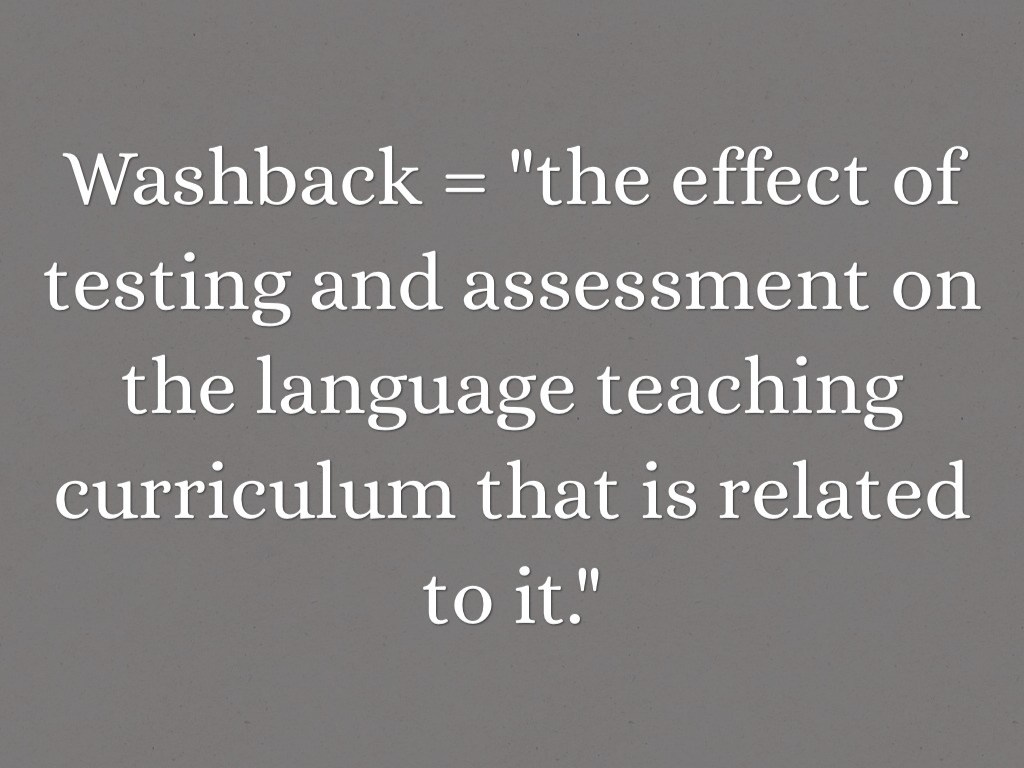 Washback = "the effect of testing and assessment on the language teaching curriculum that is related to it."