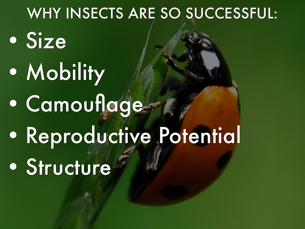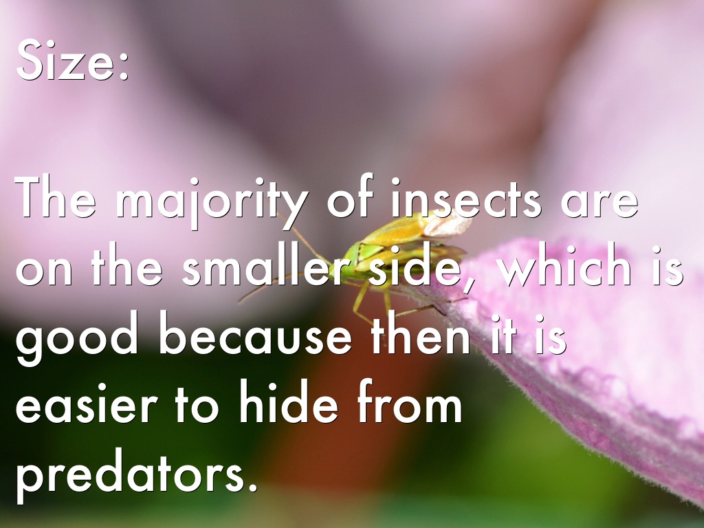 The majority of insects are on the smaller side, which is good because then it is easier to hide from predators.