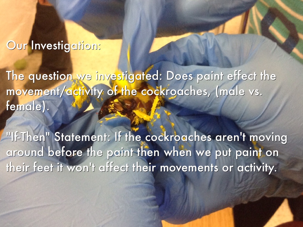 "If-Then" Statement: If the cockroaches aren't moving around before the paint then when we put paint on their feet it won't affect their movements or activity.