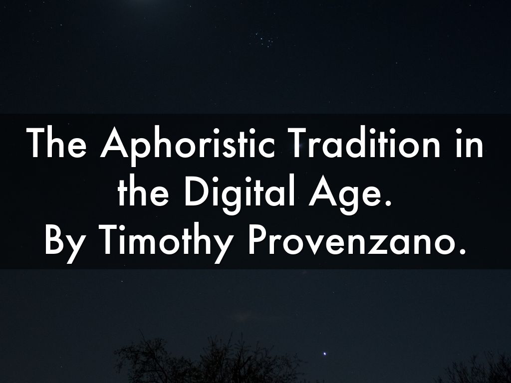 The Aphoristic Tradition in the Digital Age. By Timothy Provenzano.