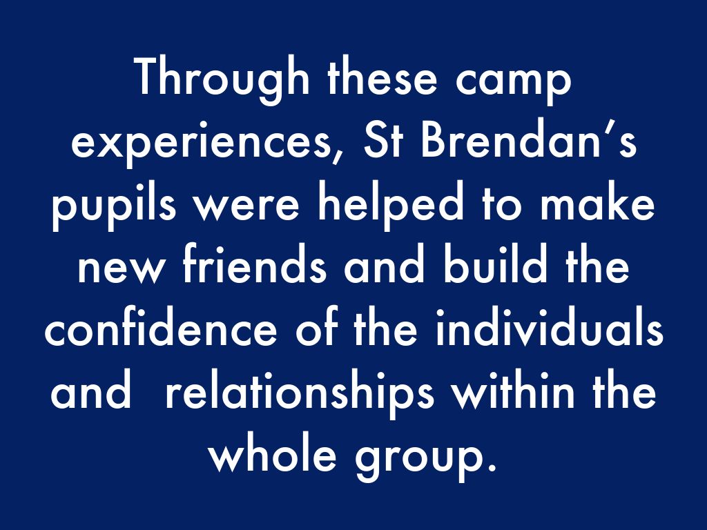 Through these camp experiences, St Brendan’s pupils were helped to make new friends and build the confidence of the individuals and relationships within the whole group.