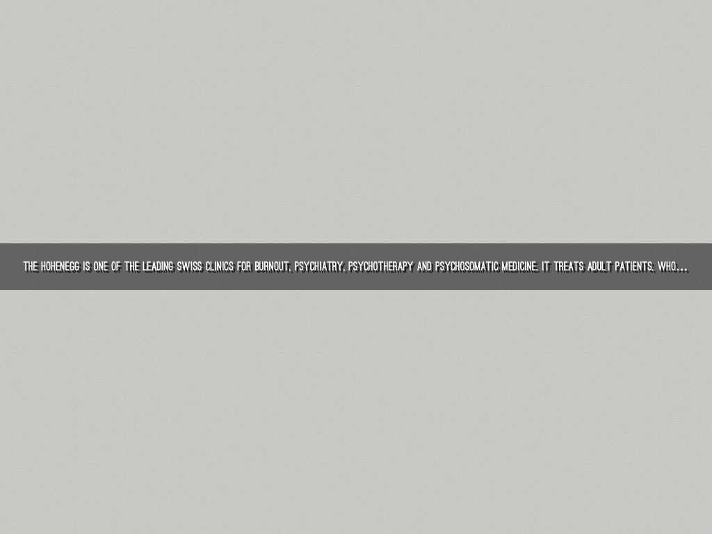 The Hohenegg is one of the leading Swiss clinics for burnout, psychiatry, psychotherapy and psychosomatic medicine. It treats adult patients, who during a period of psychological crisis need the best possible specialist advice and treatment that is specifically tailored to their particular personality.