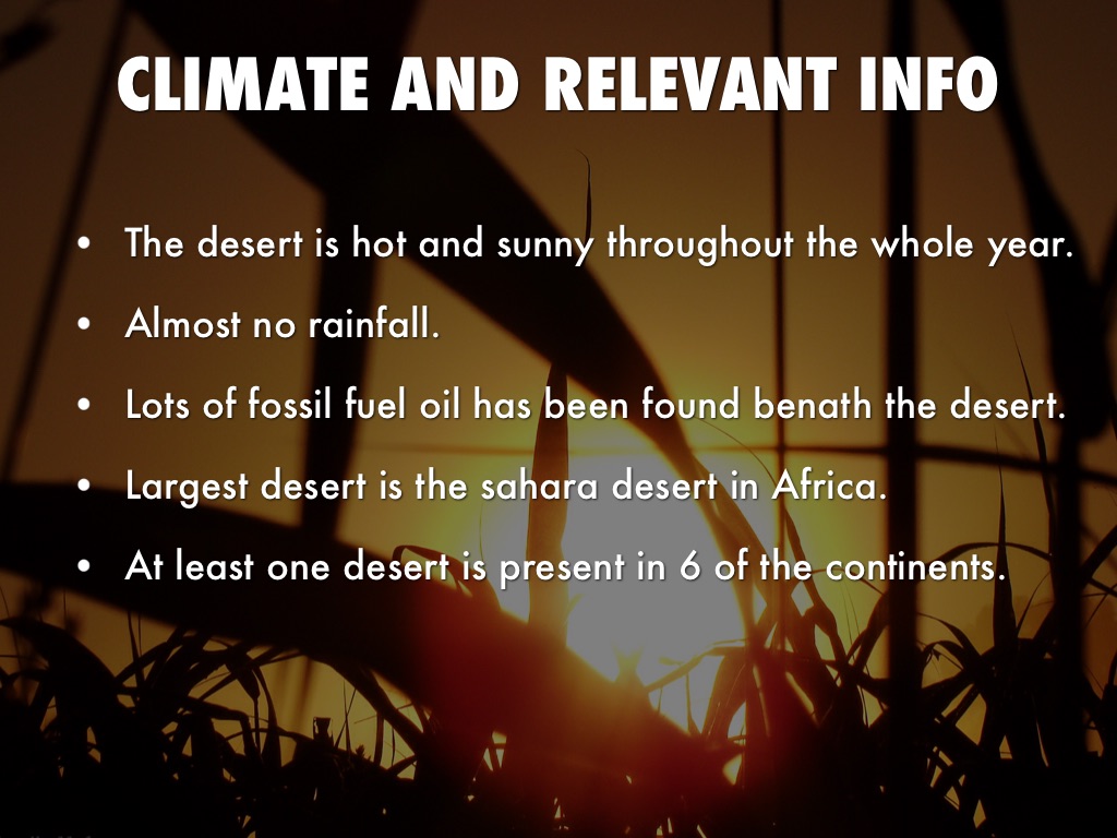 The desert is abundant in oil and oil powers up our planes, trains, cars and factories which are important.
