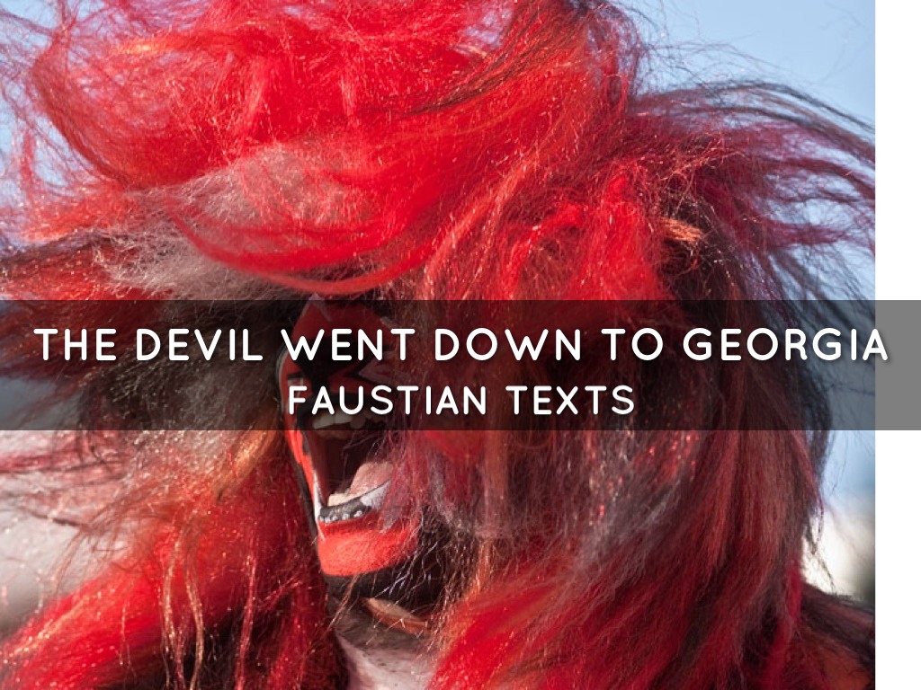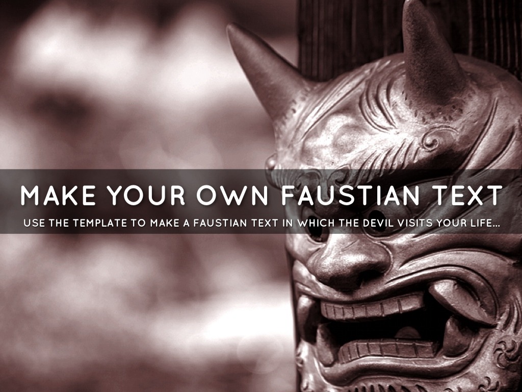 In today's classes will learn Faustian text is. In many countries people tell stories in which the devil visits their town. In Germany there is a famous play called Faust where a man sells his soul to the devil. In Russia there is the famous book The Master and Margarette in which the devil visits Moscow. In America we have the story the Devil went down to Georgia. All of these stories where the devil comes to town are called Faustian Texts.