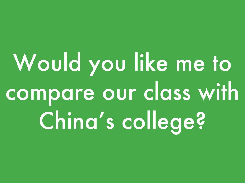 To sum up, the difference between our class and China, it is more active, more open, and contact with practice; therefore, it’s more interesting. However, in China, it is more inclined to learn from books in the classroom.