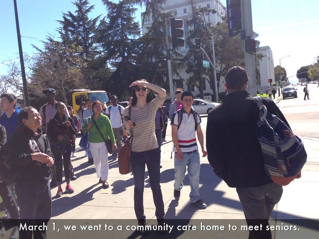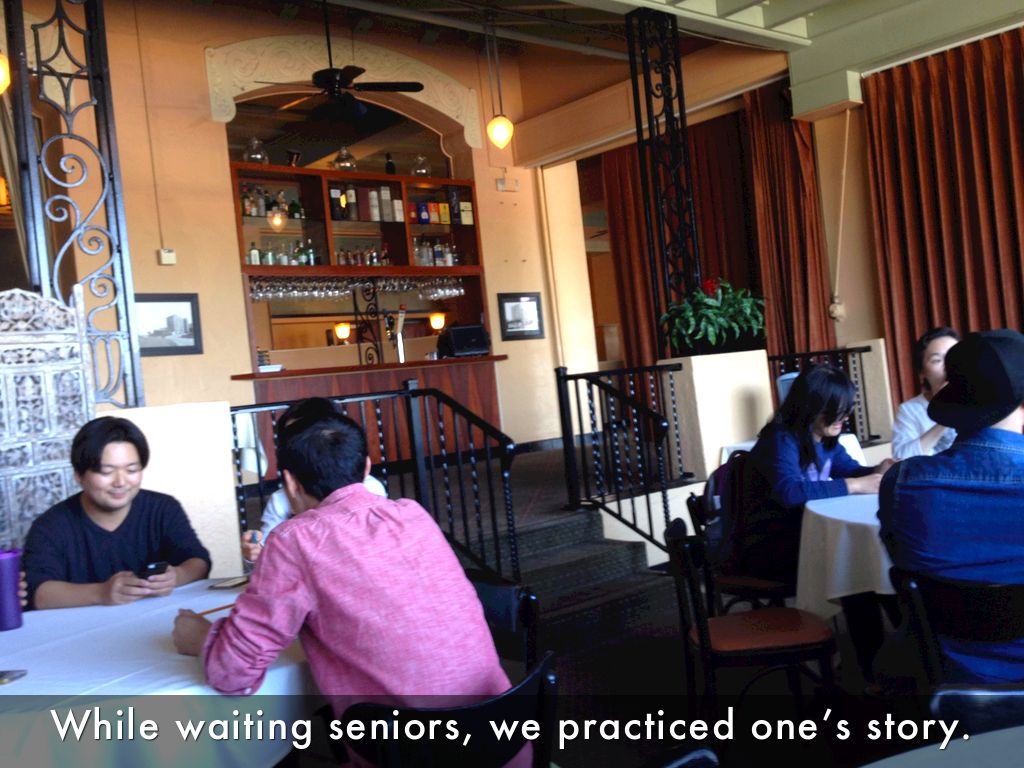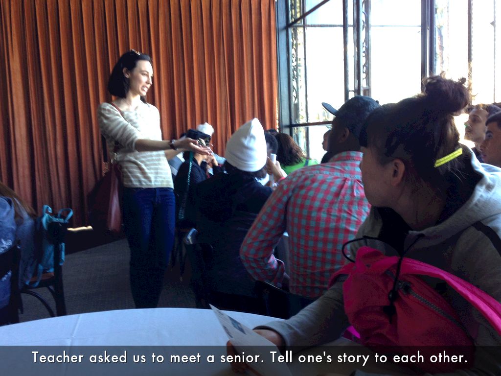 Teacher asked us to meet a senior. Tell one's story to each other.