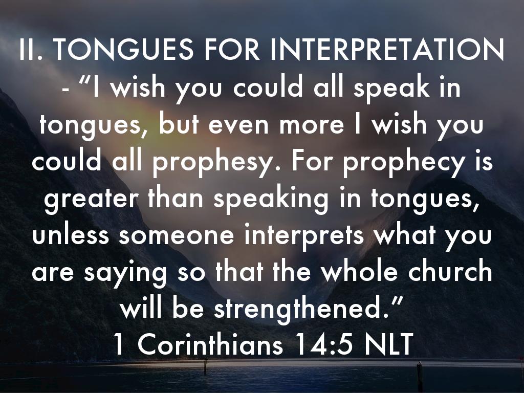 II. TONGUES FOR INTERPRETATION - “I wish you could all speak in tongues, but even more I wish you could all prophesy. For prophecy is greater than speaking in tongues, unless someone interprets what you are saying so that the whole church will be strengthened.” 1 Corinthians 14:5 NLT