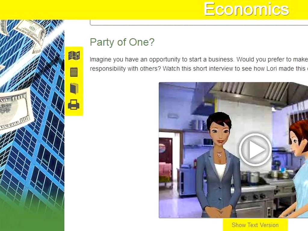 Videos and tutorials are included to help explain complex ideas and topics, such as Economics, and pique the interest of students.