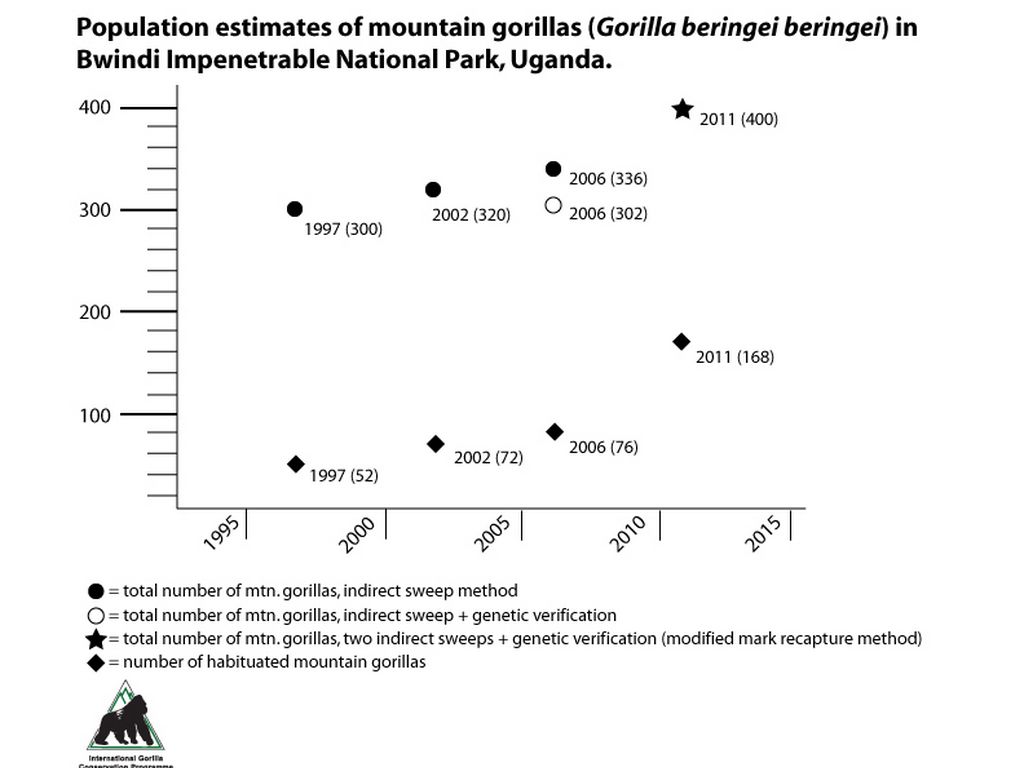 The Viruga population is 480, and the Bwindi is 400