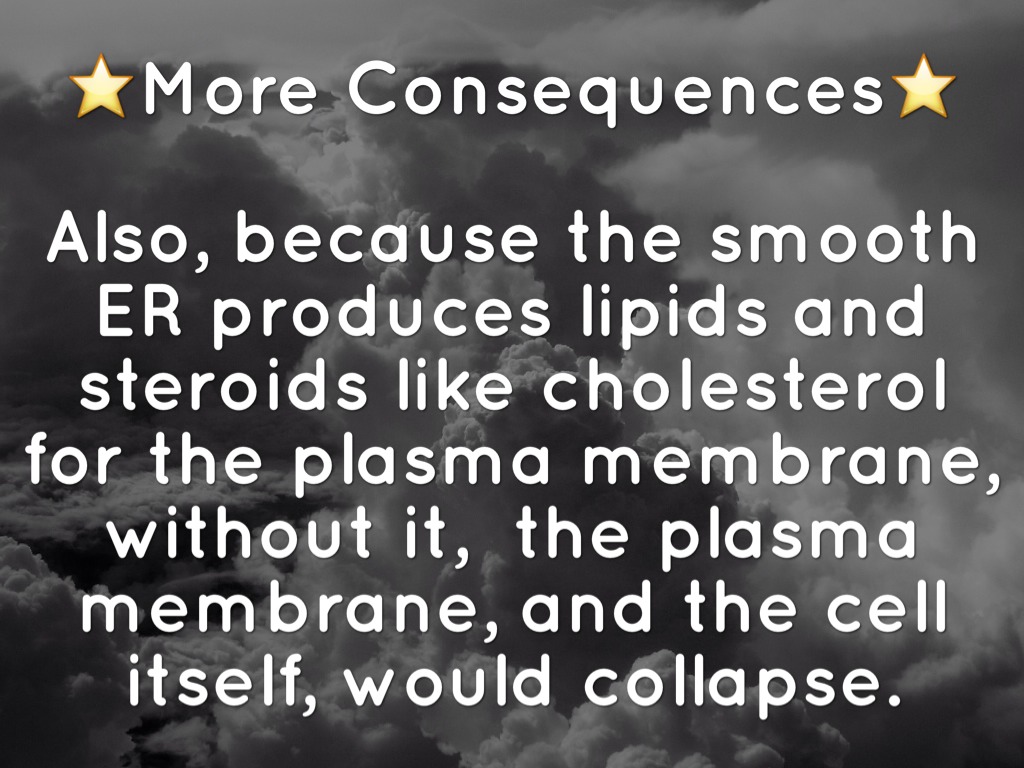 Also, because the smooth ER produces lipids and steroids like cholesterol for the plasma membrane, without it, the plasma membrane, and the cell itself, would collapse.