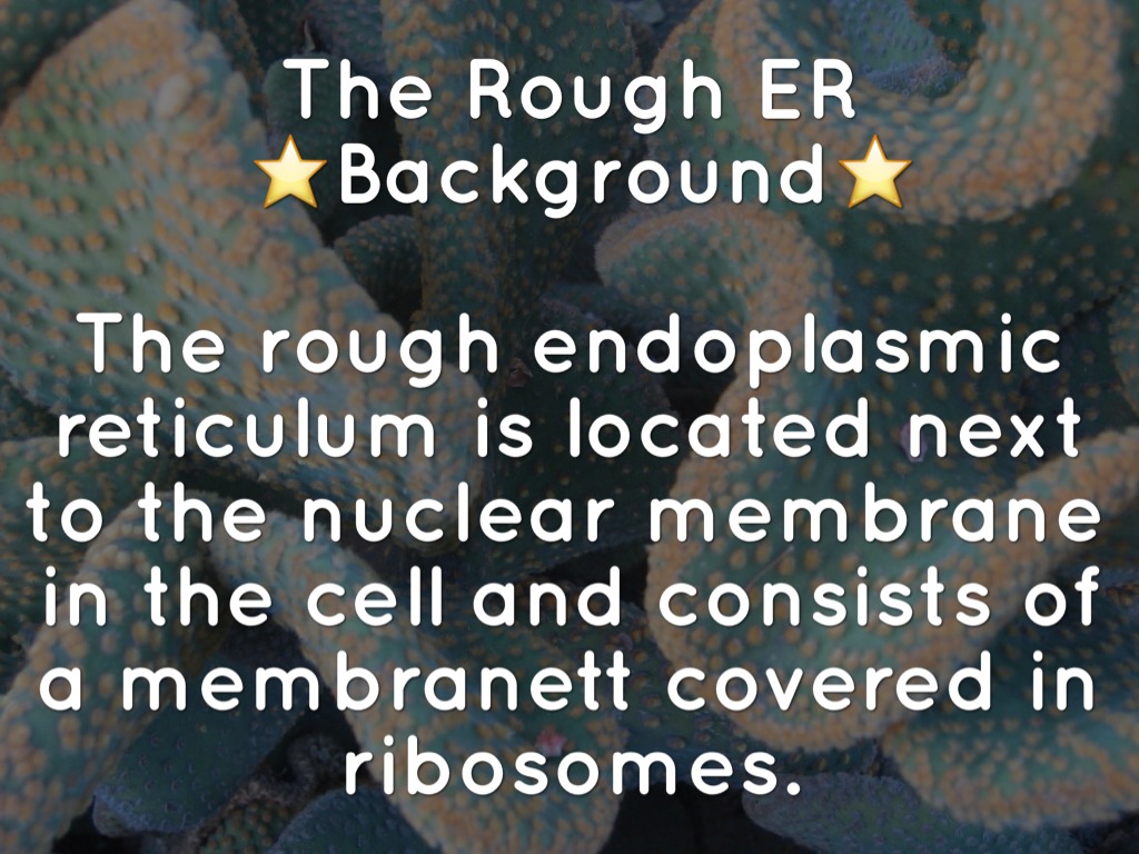 The rough endoplasmic reticulum is located next to the nuclear membrane in the cell and consists of a membranett covered in ribosomes.
