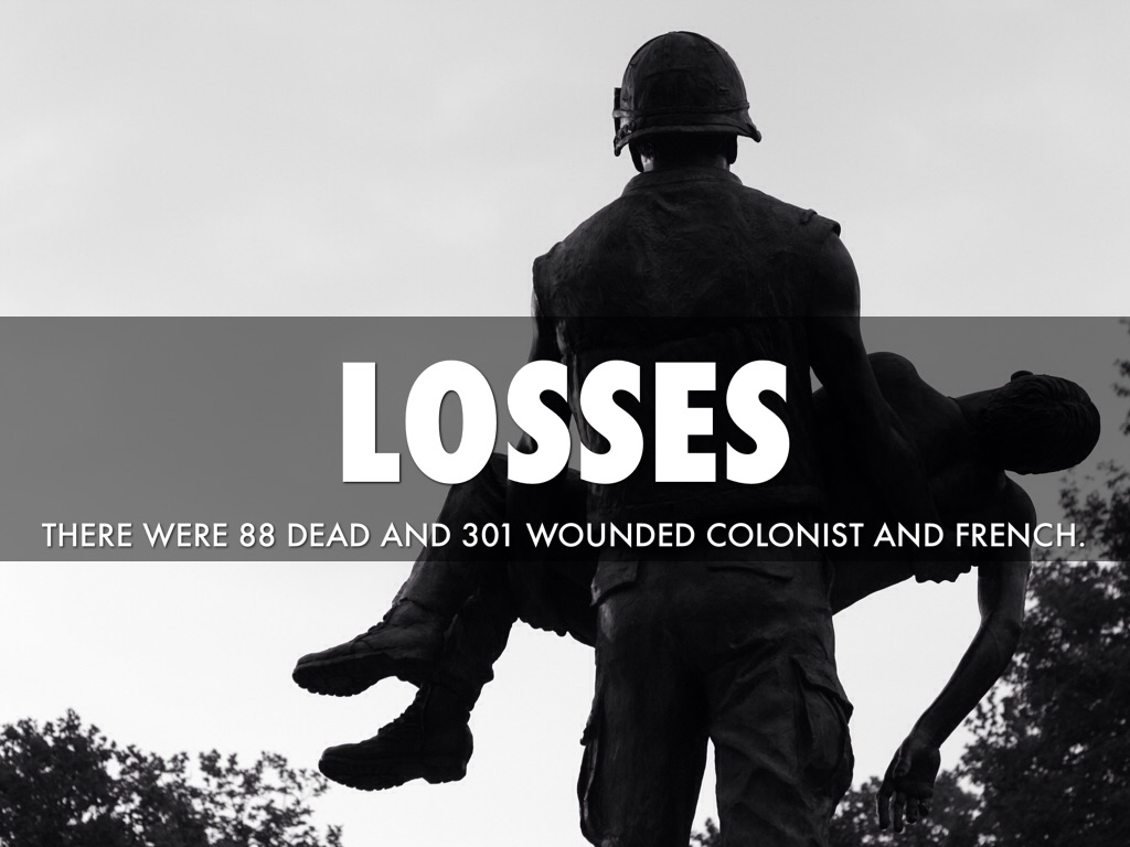 THERE WERE 88 DEAD AND 301 WOUNDED COLONIST AND FRENCH.