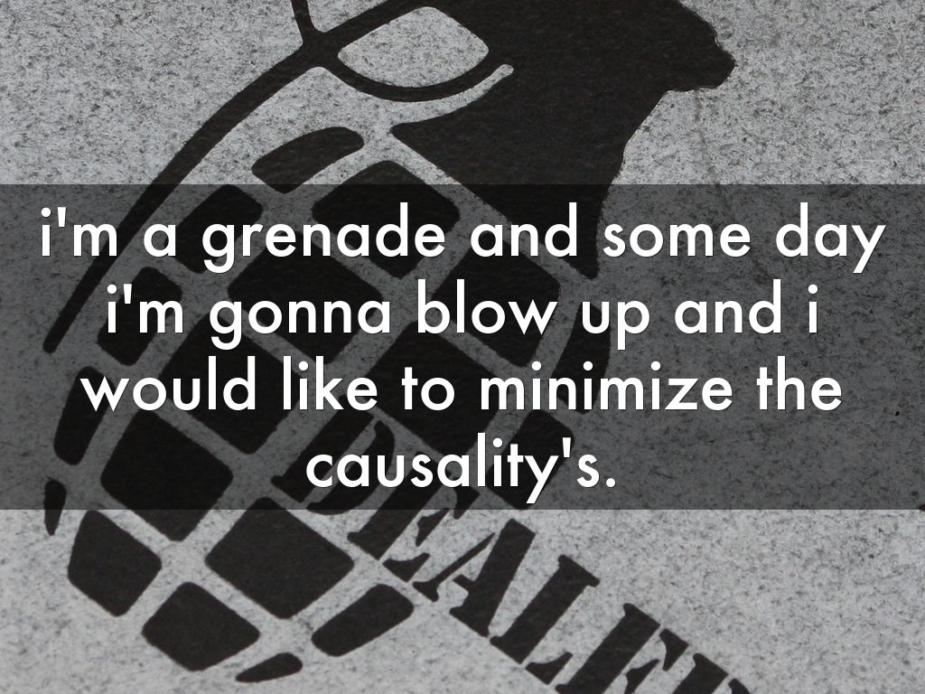 i'm a grenade and some day i'm gonna blow up and i would like to minimize the causality's.