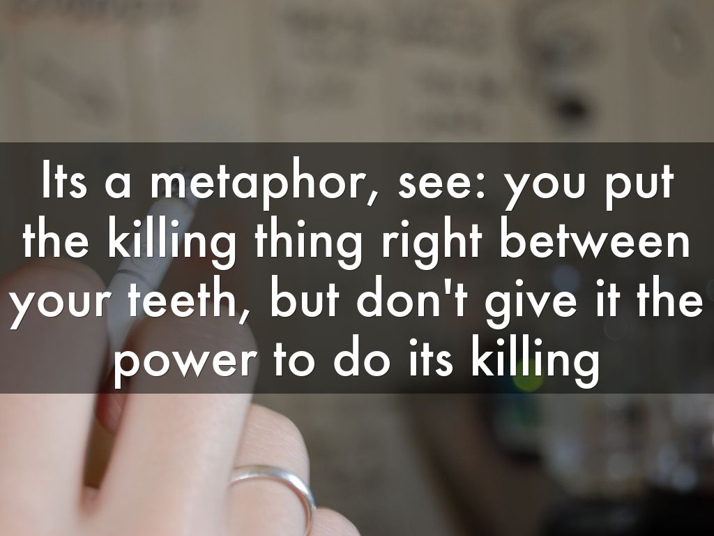 Its a metaphor, see: you put the killing thing right between your teeth, but don't give it the power to do its killing