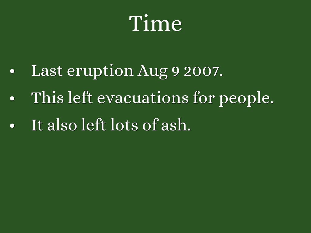 • Last eruption Aug 9 2007.