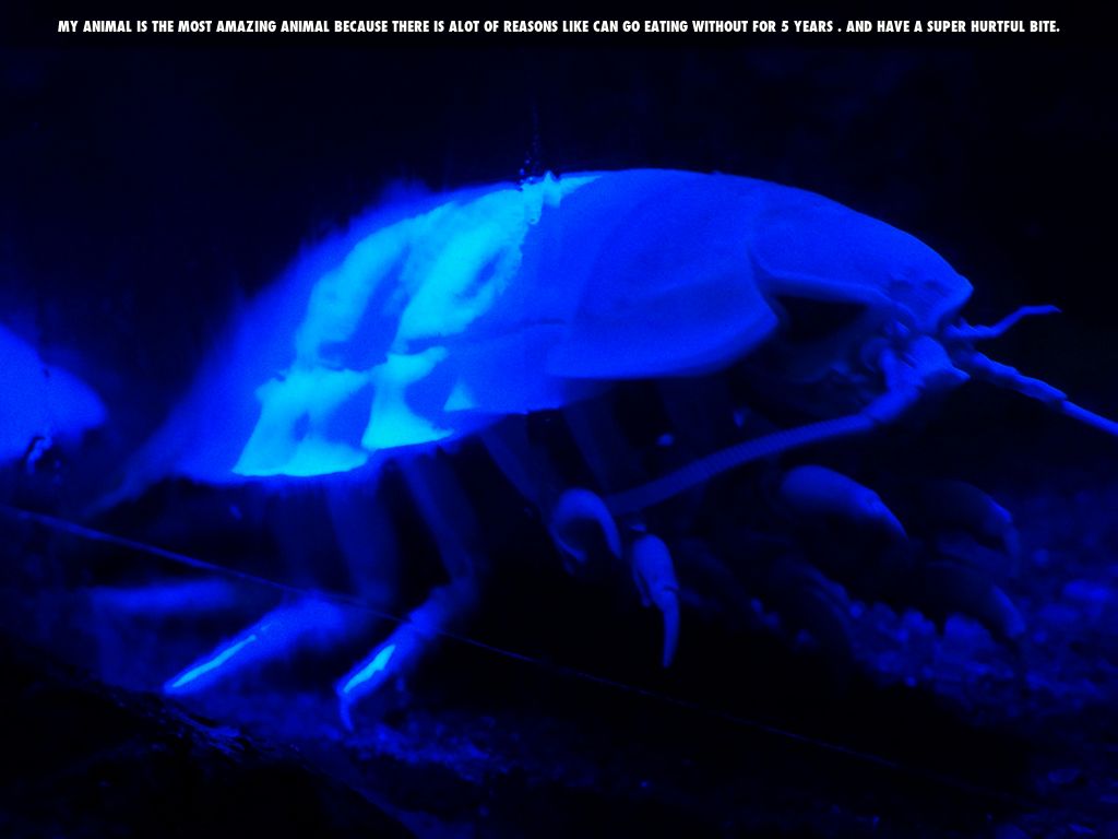 MY ANIMAL IS THE MOST AMAZING ANIMAL BECAUSE THERE IS ALOT OF REASONS LIKE CAN GO EATING WITHOUT FOR 5 YEARS . AND HAVE A SUPER HURTFUL BITE.