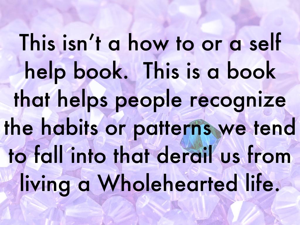 This isn’t a how to or a self help book. This is a book that helps people recognize the habits or patterns we tend to fall into that derail us from living a Wholehearted life.