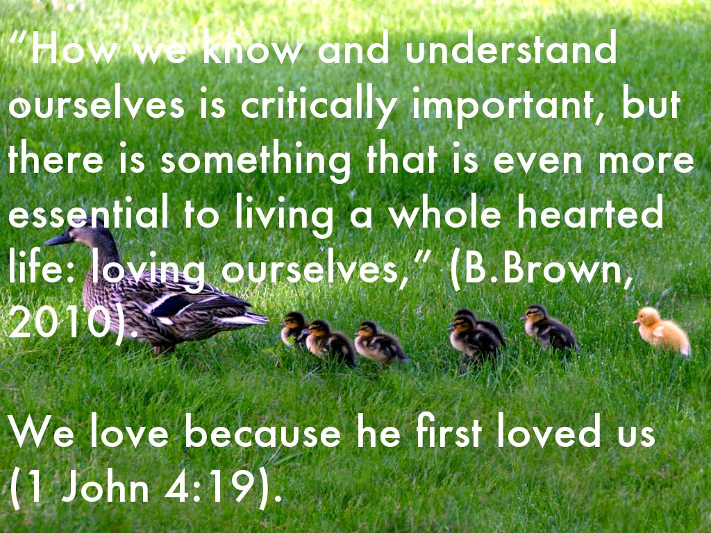 “How we know and understand ourselves is critically important, but there is something that is even more essential to living a whole hearted life: loving ourselves,” (B.Brown, 2010).