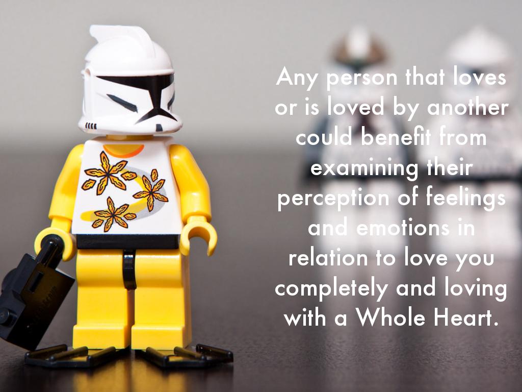 Any person that loves or is loved by another could benefit from examining their perception of feelings and emotions in relation to love you completely and loving with a Whole Heart.