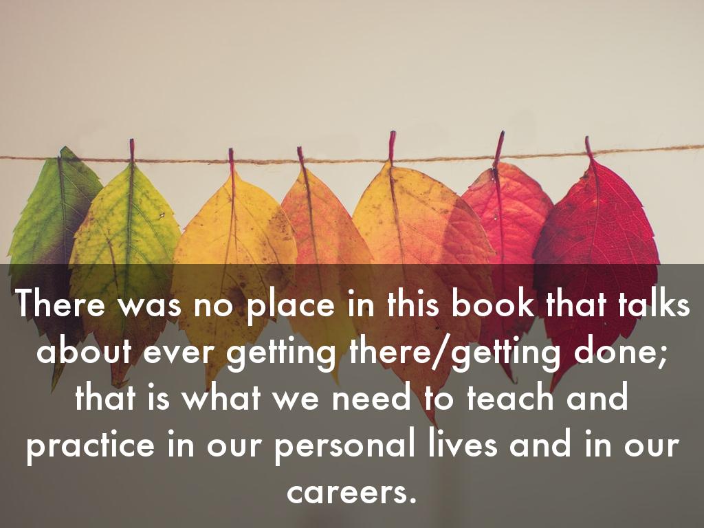 There was no place in this book that talks about ever getting there/getting done; that is what we need to teach and practice in our personal lives and in our careers.