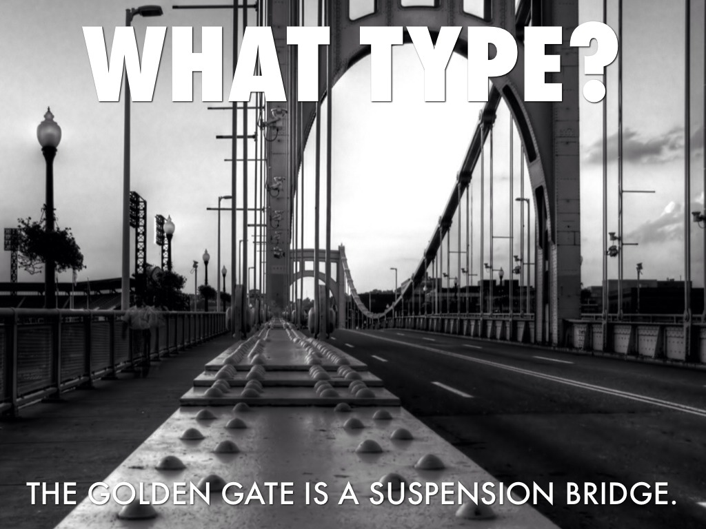 THE GOLDEN GATE IS A SUSPENSION BRIDGE.