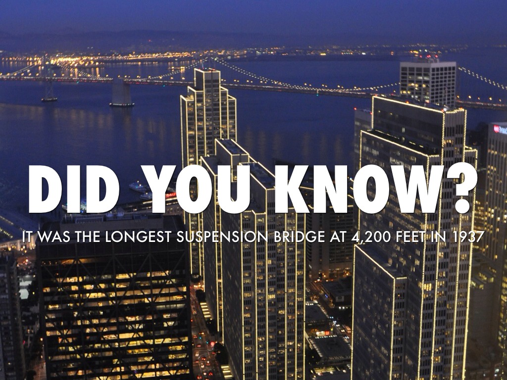 IT WAS THE LONGEST SUSPENSION BRIDGE AT 4,200 FEET IN 1937