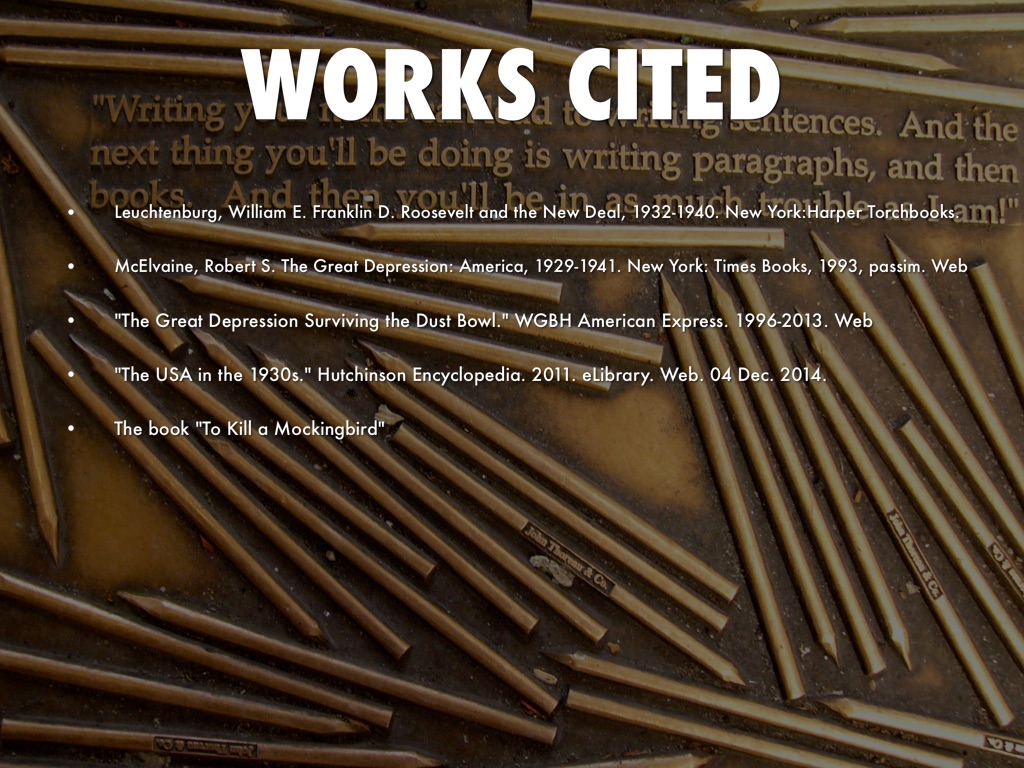 McElvaine, Robert S. The Great Depression: America, 1929-1941. New York: Times Books, 1993, passim. Web