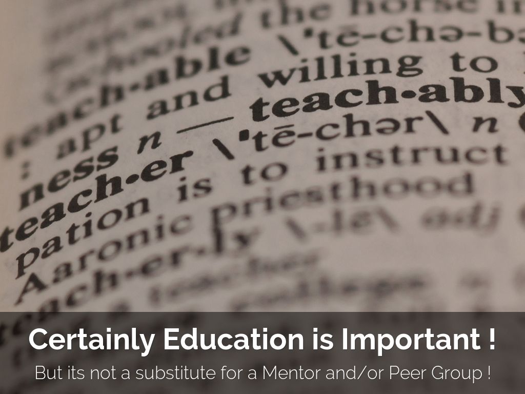 But its not a substitute for a Mentor and/or Peer Group !