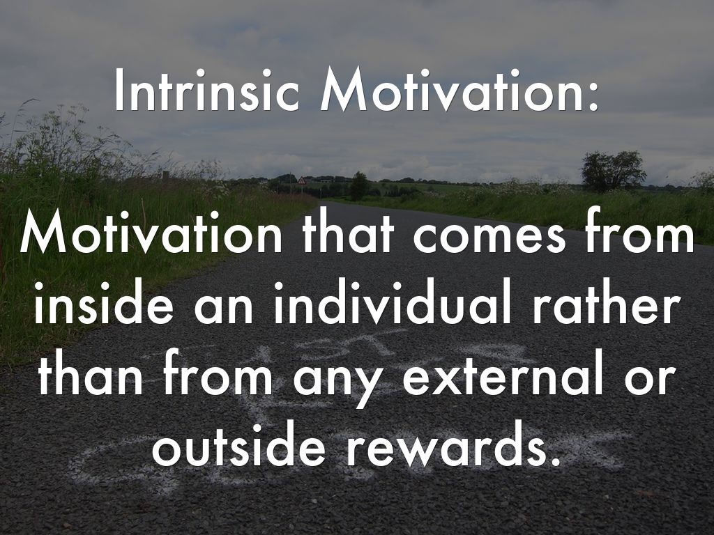Motivation that comes from inside an individual rather than from any external or outside rewards.
