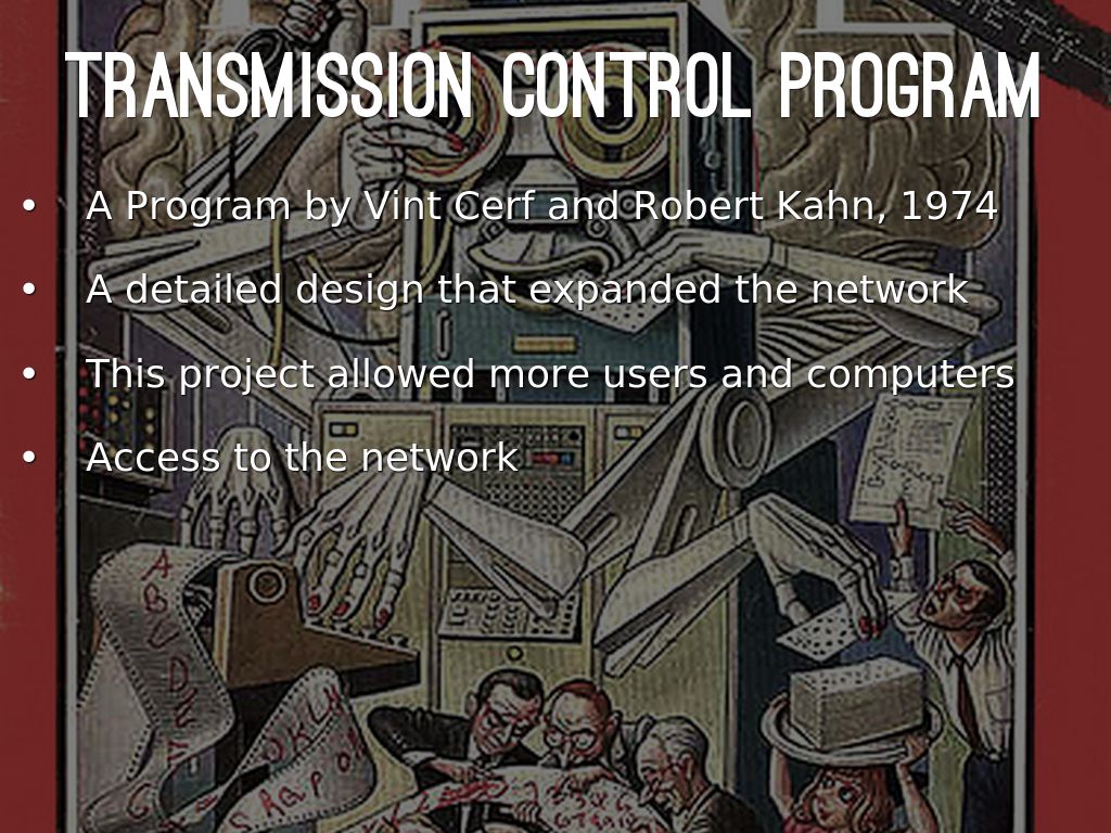 • A Program by Vint Cerf and Robert Kahn, 1974