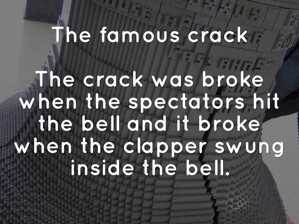 The crack was broke when the spectators hit the bell and it broke when the clapper swung inside the bell.