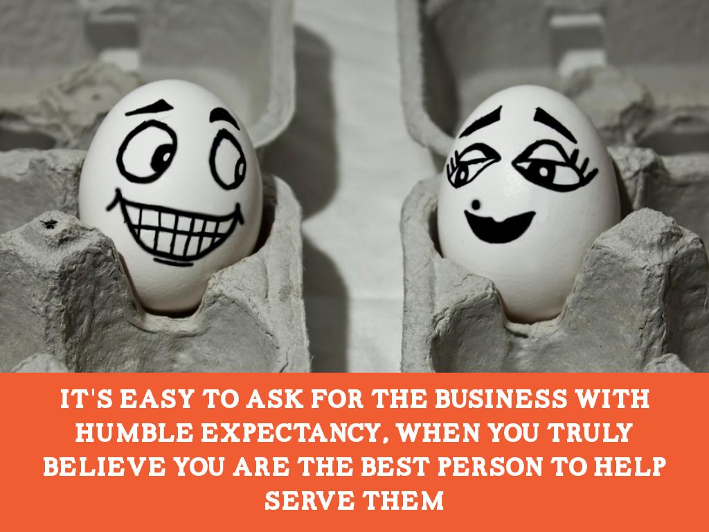 It's easy to ask for the business with humble expectancy, when you truly believe you are the best person to help serve them