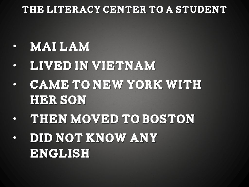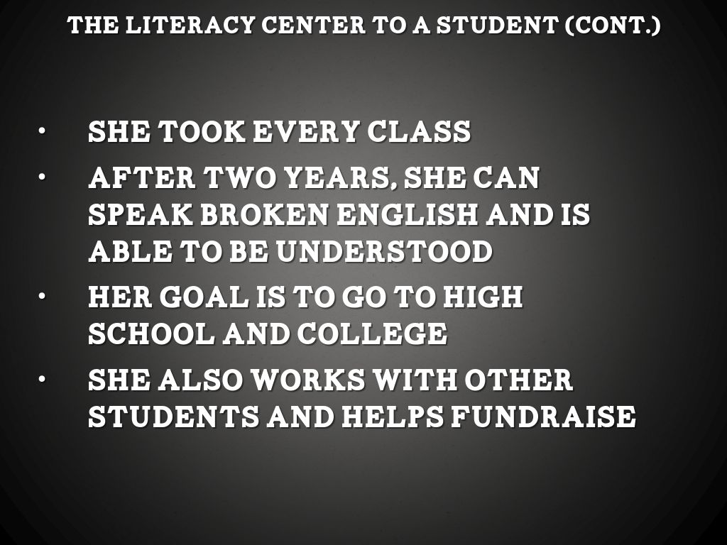 tHE LITERACY CENTER TO A STUDENT (cont.)