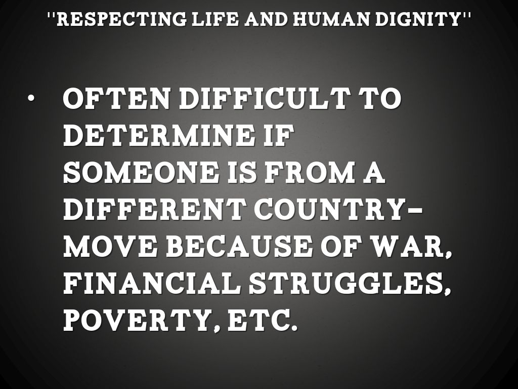 ''RESPECTING LIFE AND HUMAN DIGNITY''