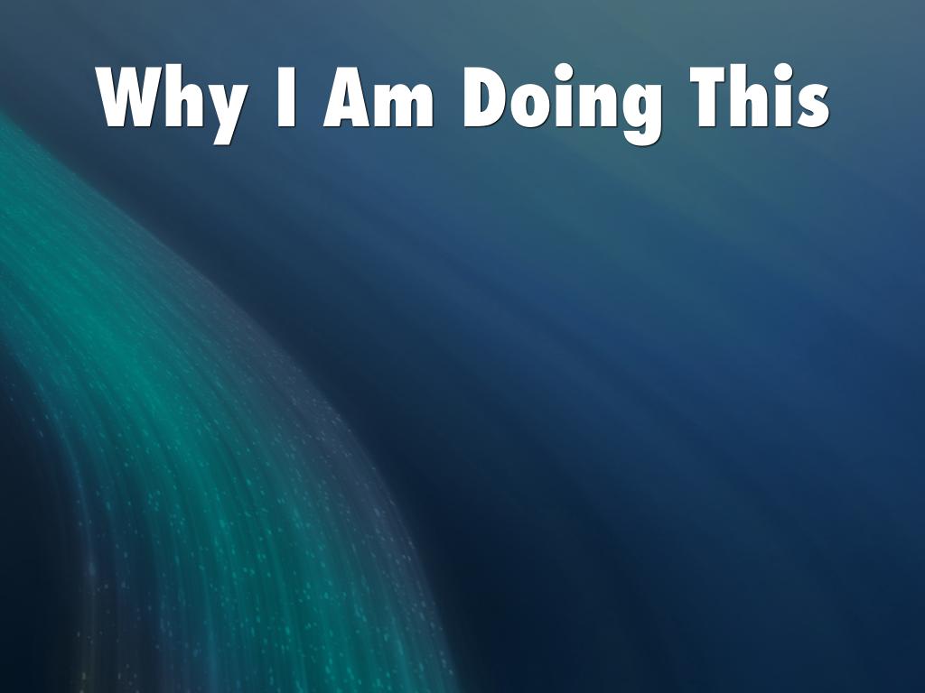 Why I Am Doing This