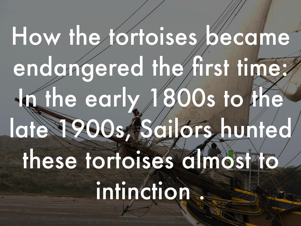 In the early 1800s to the late 1900s, Sailors hunted these tortoises almost to intinction .