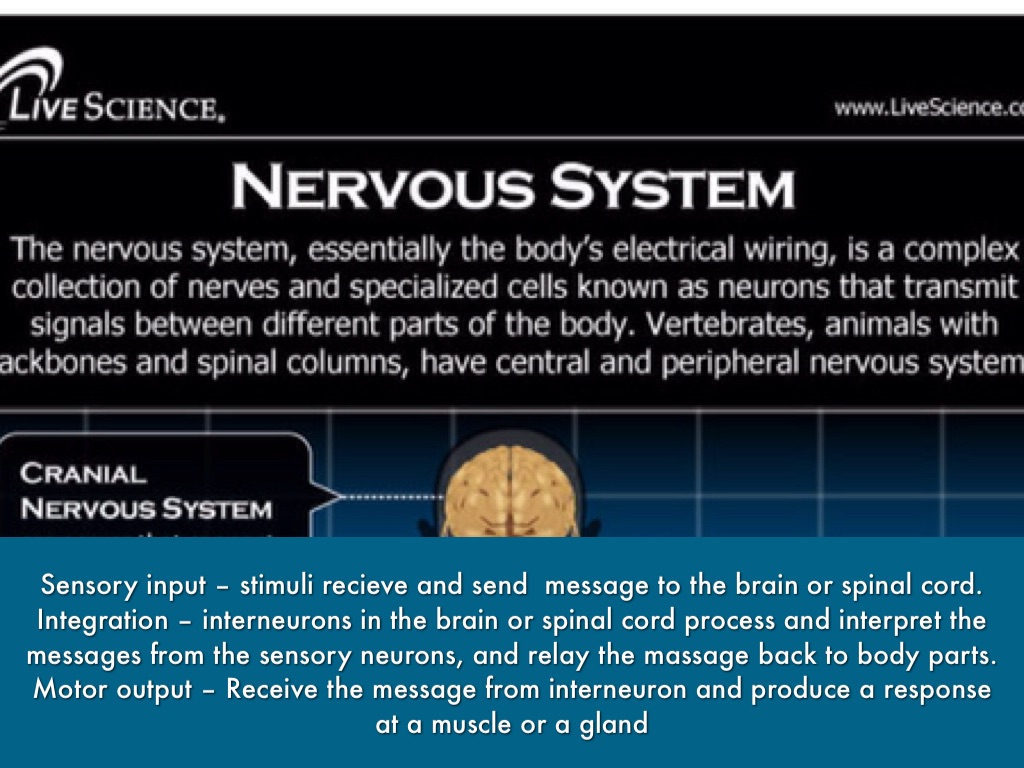 Sensory input – stimuli recieve and send message to the brain or spinal cord.