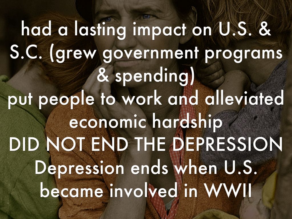 had a lasting impact on U.S. & S.C. (grew government programs & spending)