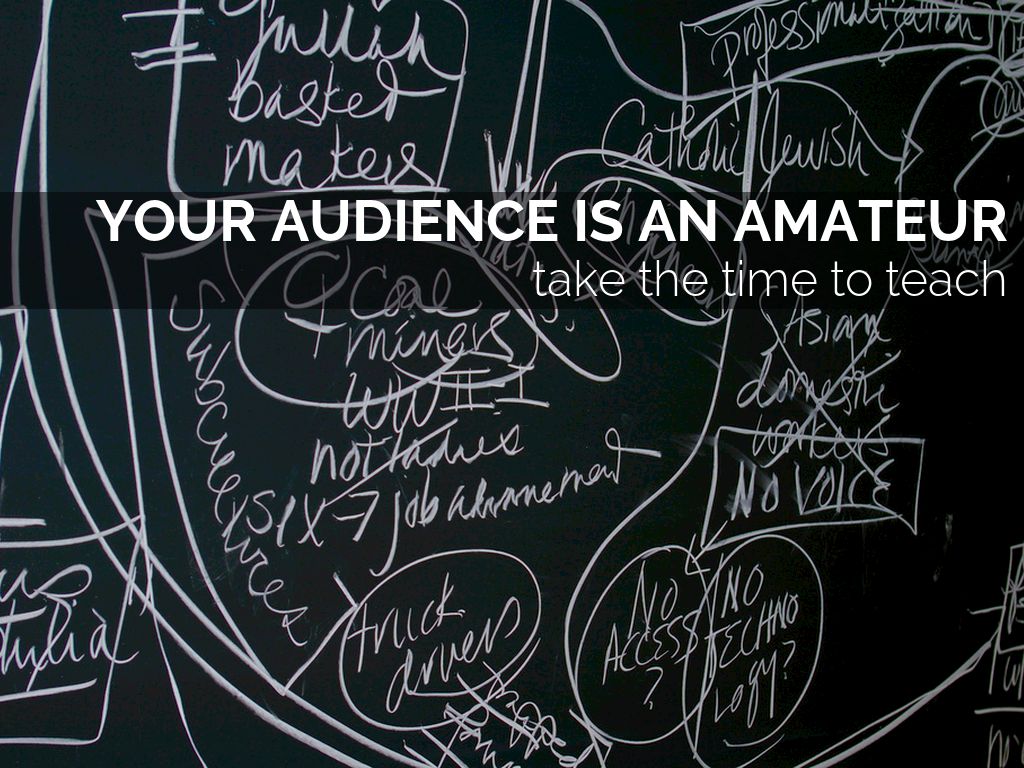 EXAMPLE: We are making assumptions that the people we reach out to, at a base level, believe in media, believe in community organizing and the power of shared experiences. These ideologies aren’t reflected in demographics!